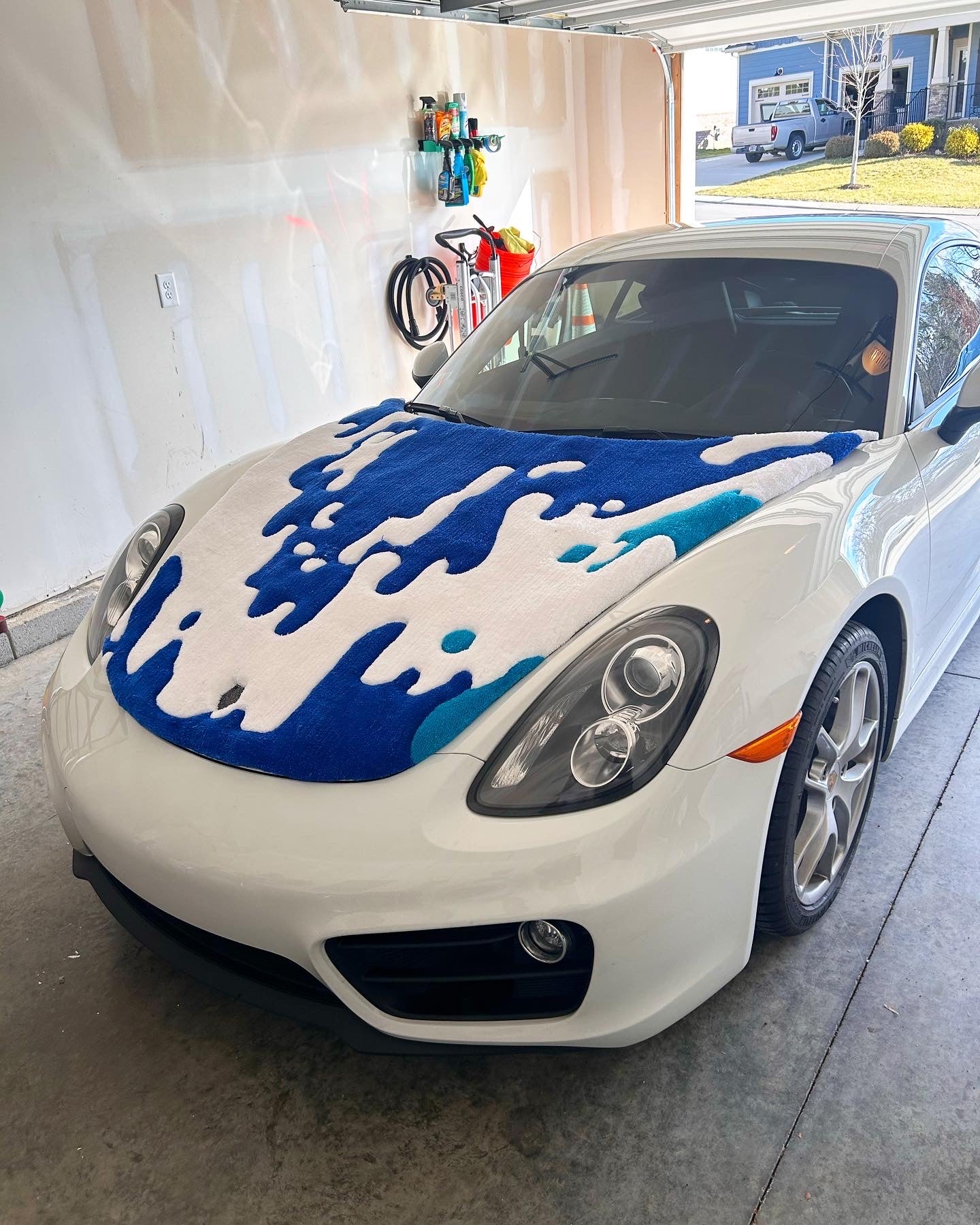 It has a soft felt backing to keep scratches to a minimum. Since it's a cover it won't be glued to the car and we are working on getting it fully wrapped before the completion of this project.